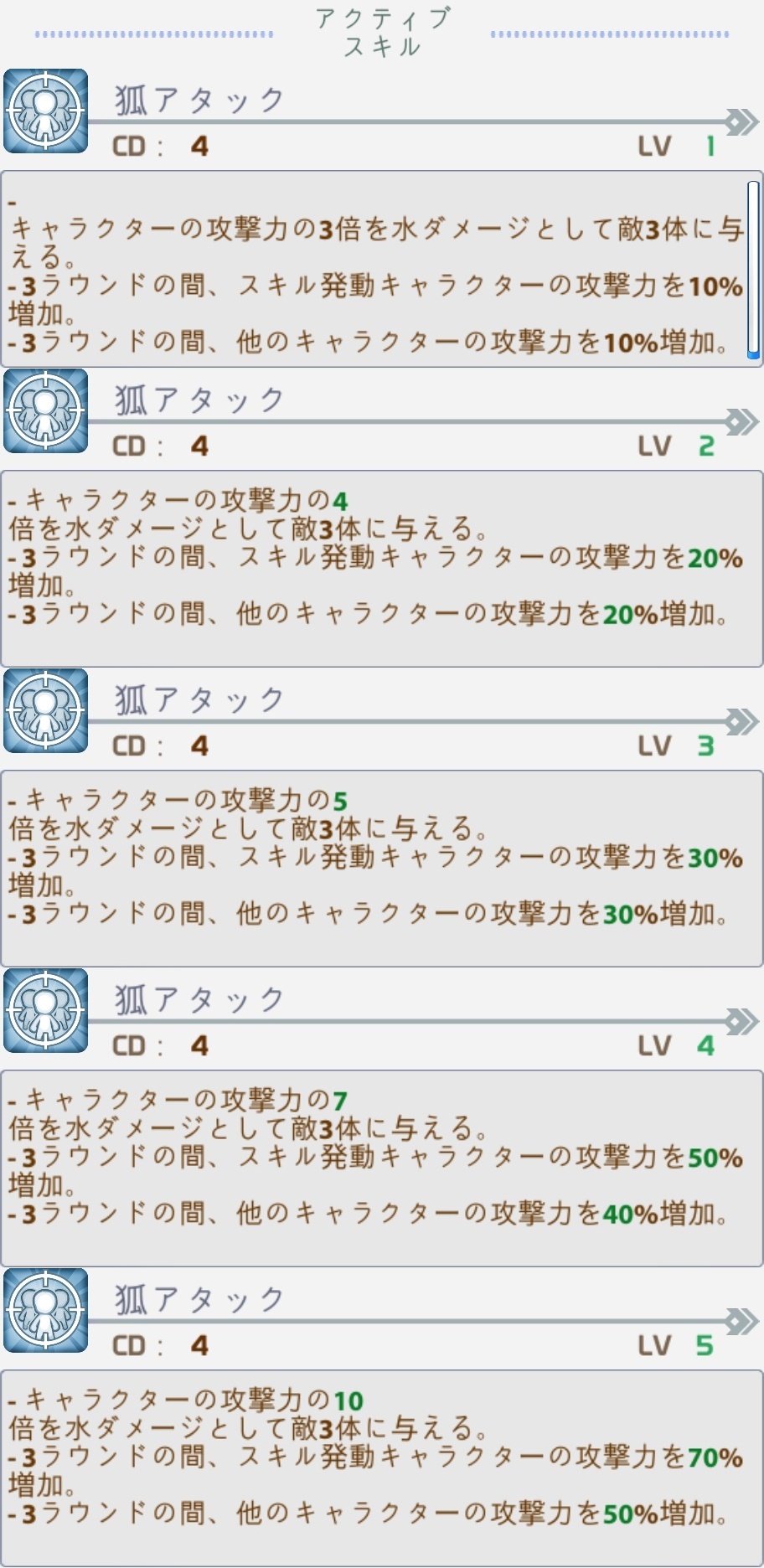 | 4星にランクイン:攻撃力が5%増加する |