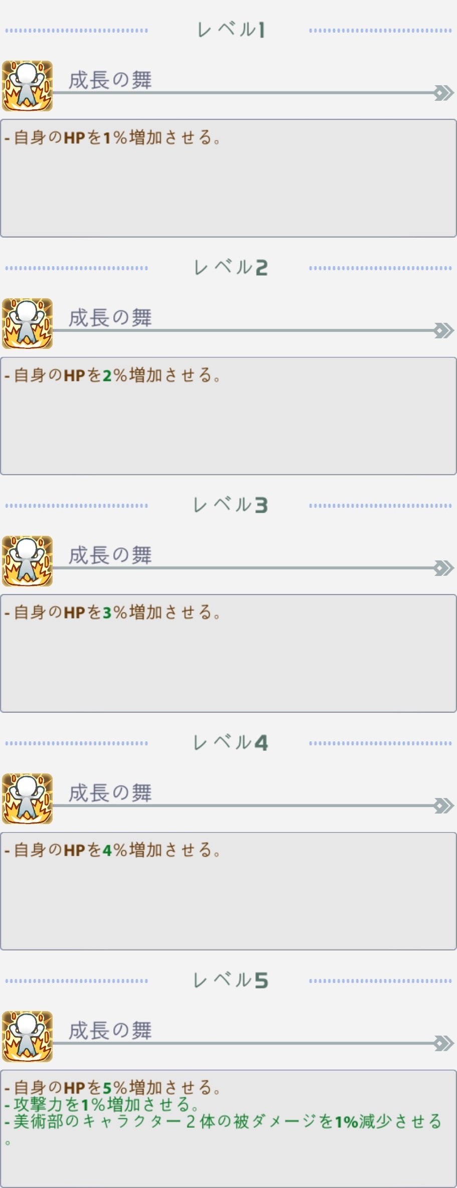 | レベル5でランクアップ:最大HPが3%増加する |