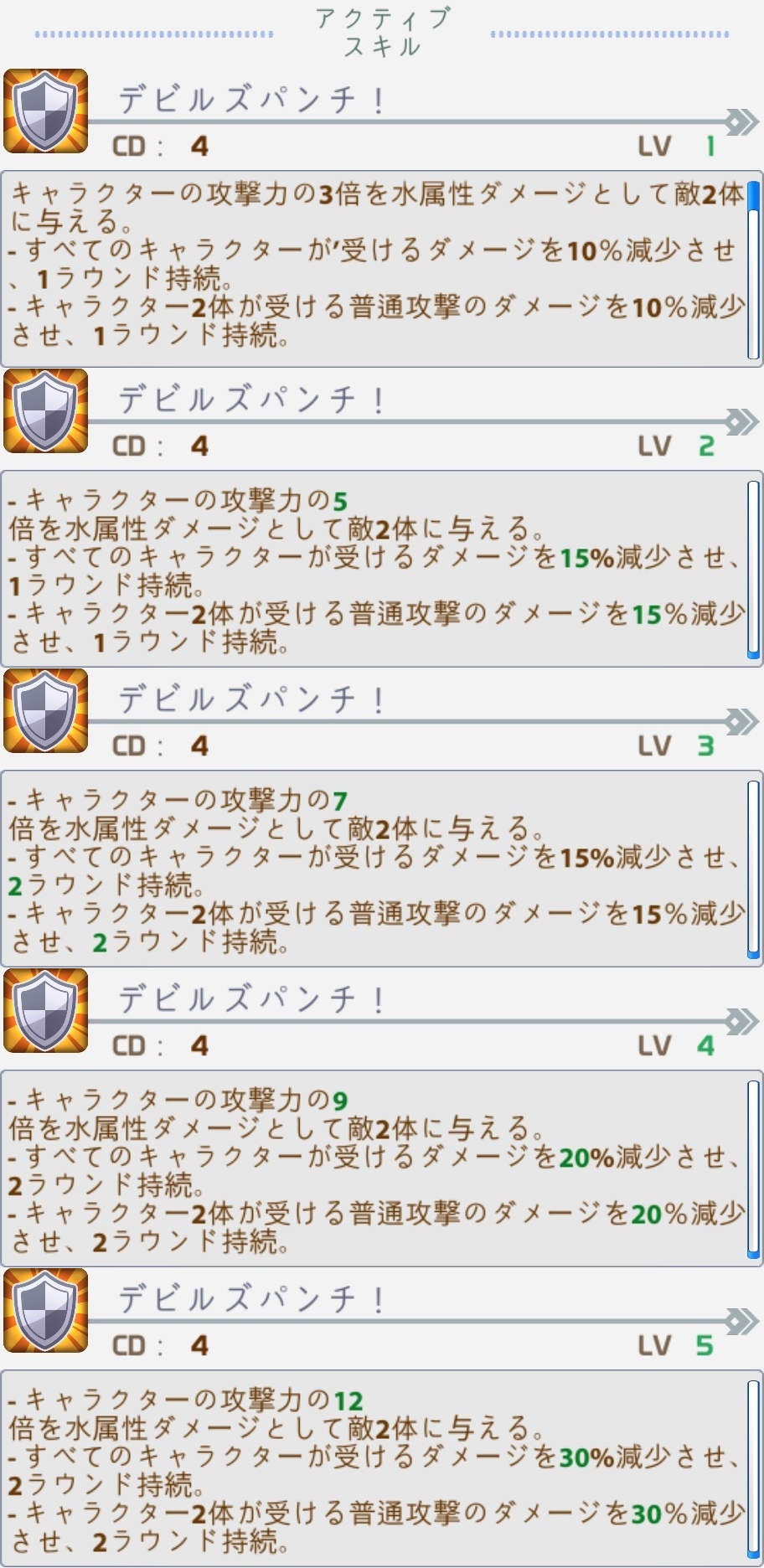 | レベル4でランクアップ:攻撃力が2%増加する |