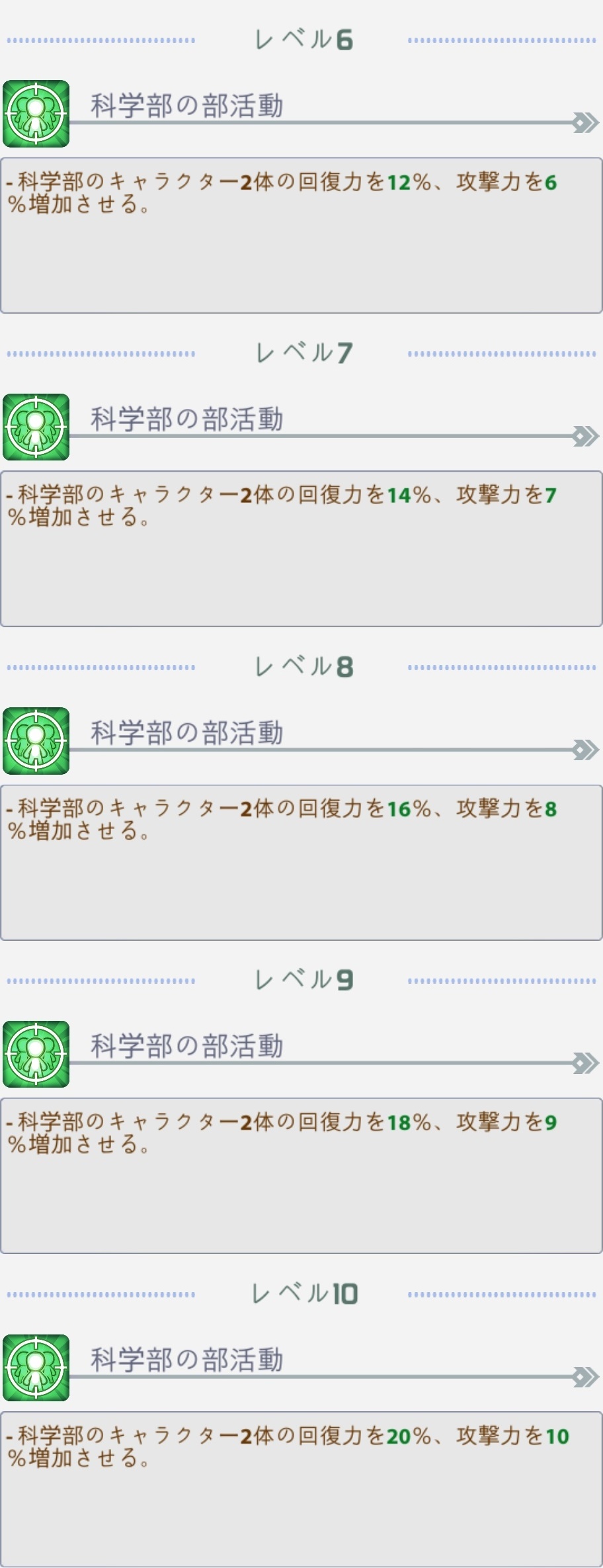 | レベル8でランクアップ:攻撃力が6%増加する |